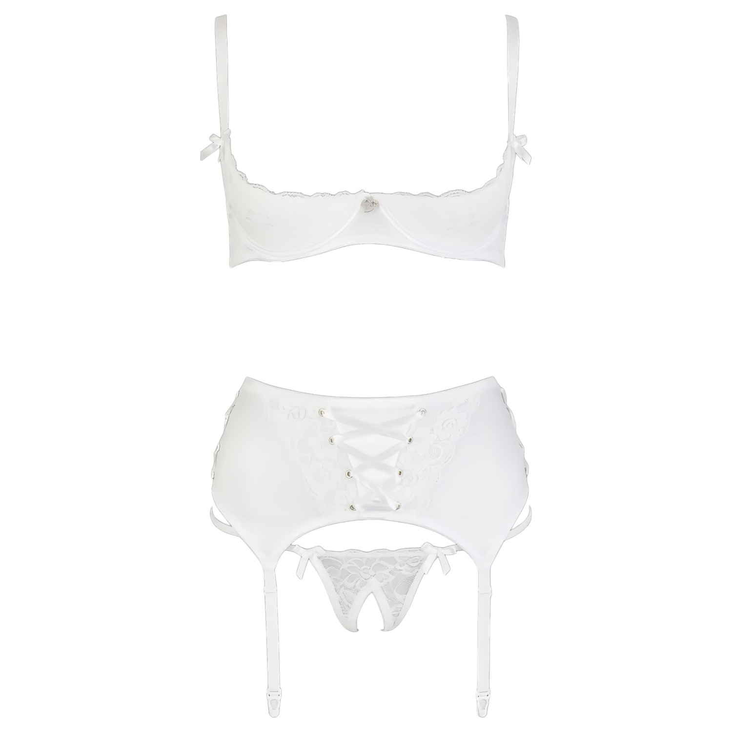 Senzualen komplet spodnjega perila, popoln za poročno noč ali vroče trenutke v dvoje, saj ti ga med užitki sploh ni treba sleči!