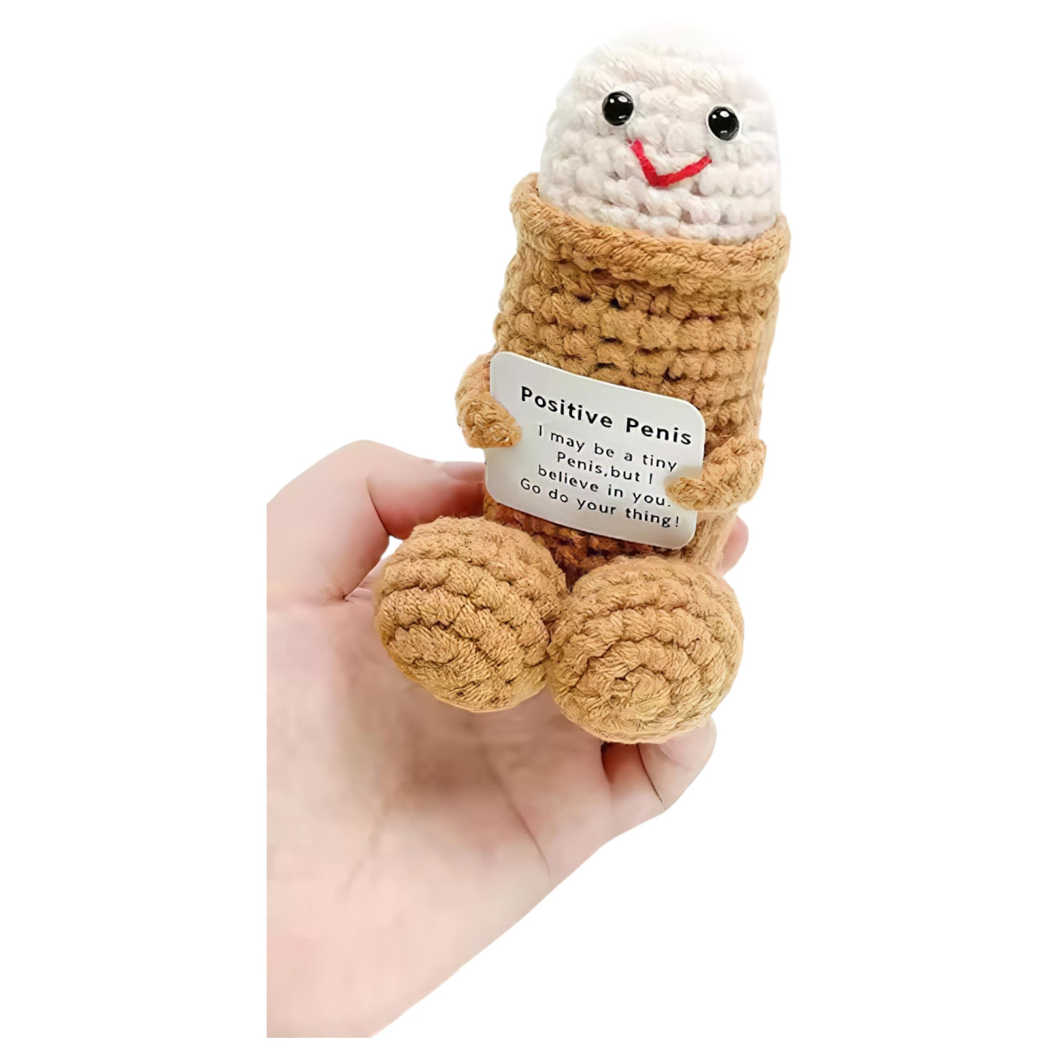 Ta naravno obarvana, igriva pletena figura je odlična izbira za smešno darilo, fantovščino, prijateljsko presenečenje ali dekoracijo. Je mehka, lahka in prijazna na pogled - bolj je vir humorja kot erotični predmet.